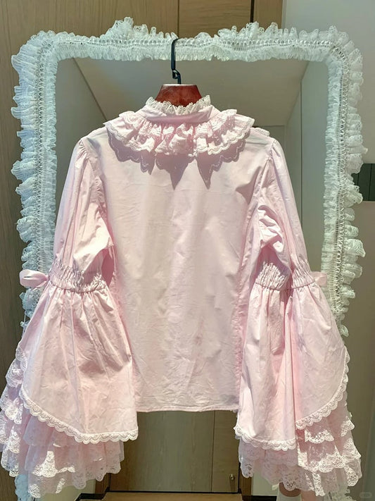 Lace Blouse Lolita Pink Sleeves Layered Bell Light