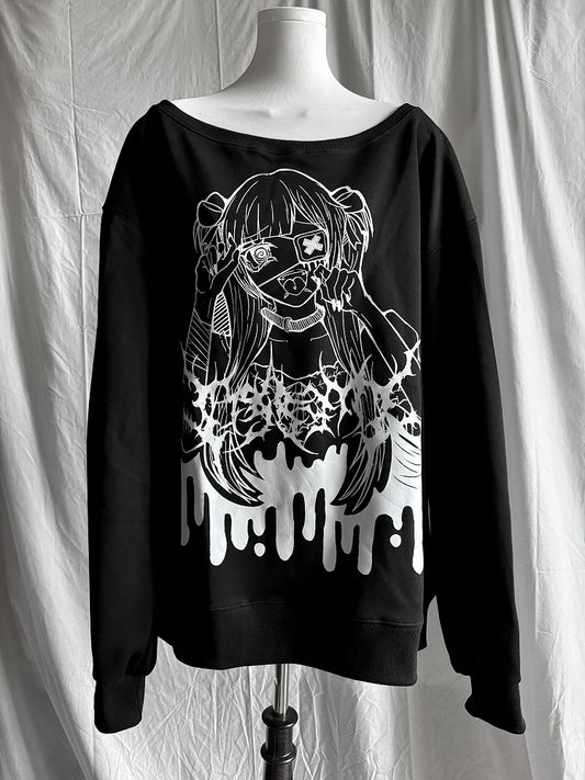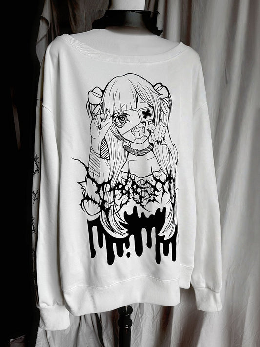 Dark Sweatshirt Style Jirai Kei Girl Oversized Printed