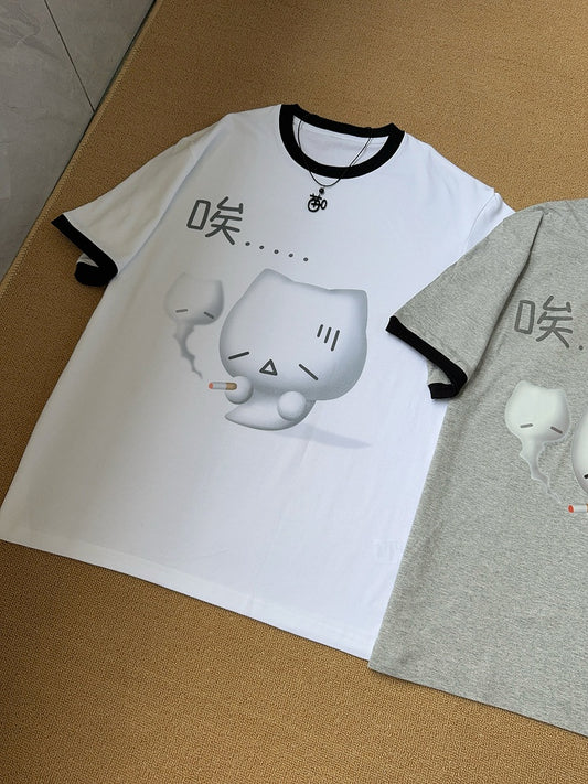 T-shirt Kitty with Cotton Sighing White Neck Print Crew