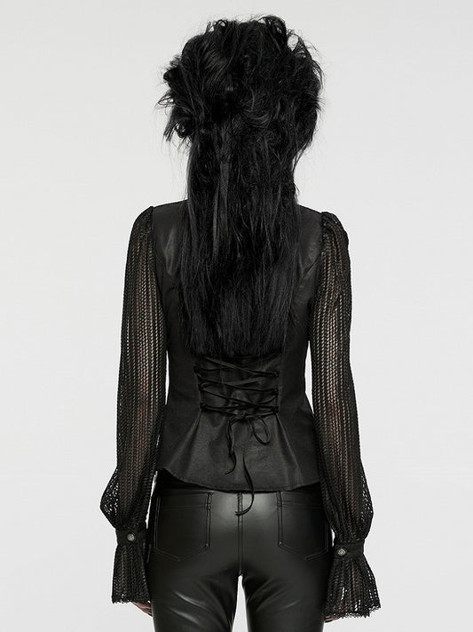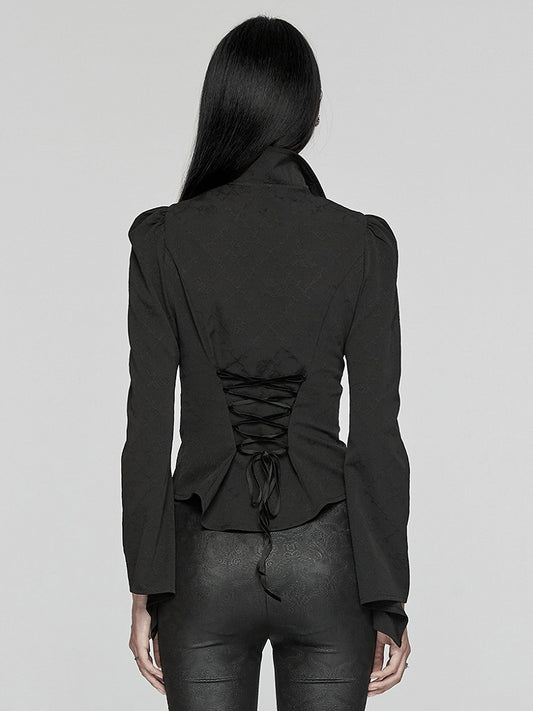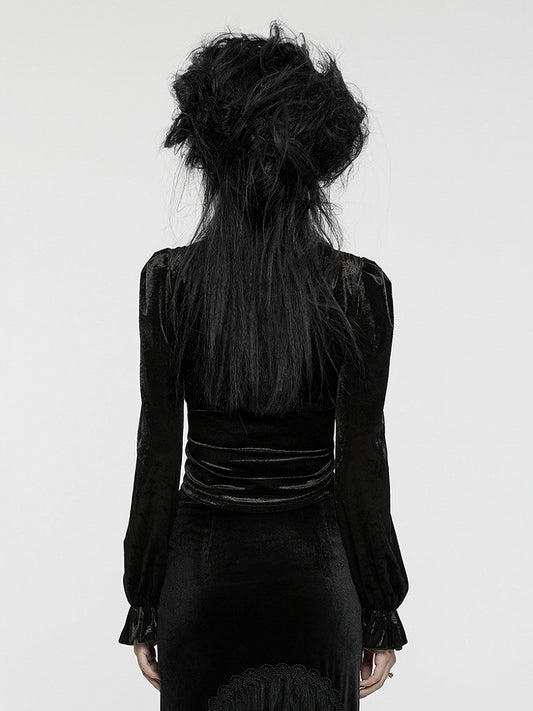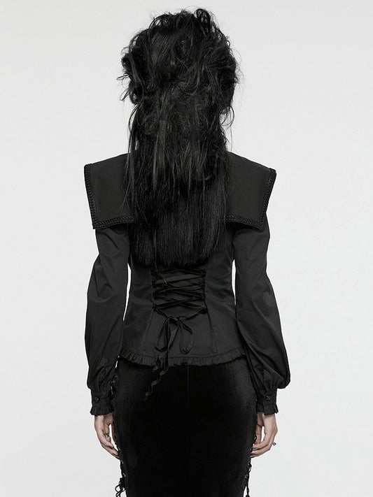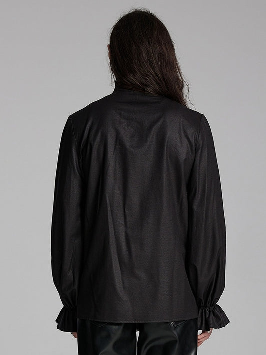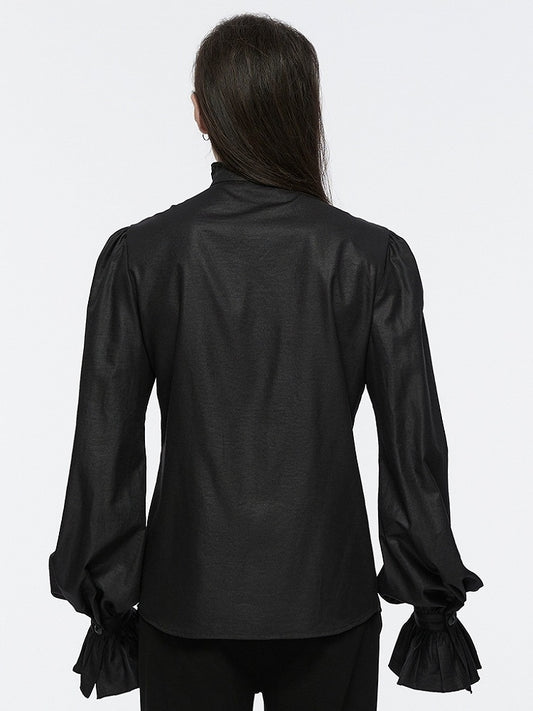 Shirt Goth Lantern Sleeves Black Pleated Visual