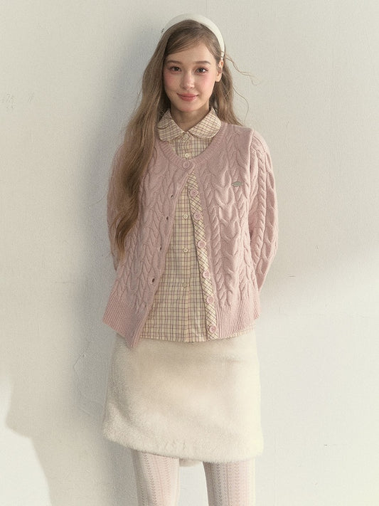 Pink Two-piece Sweet Fake with Plaid Blouse Pattern