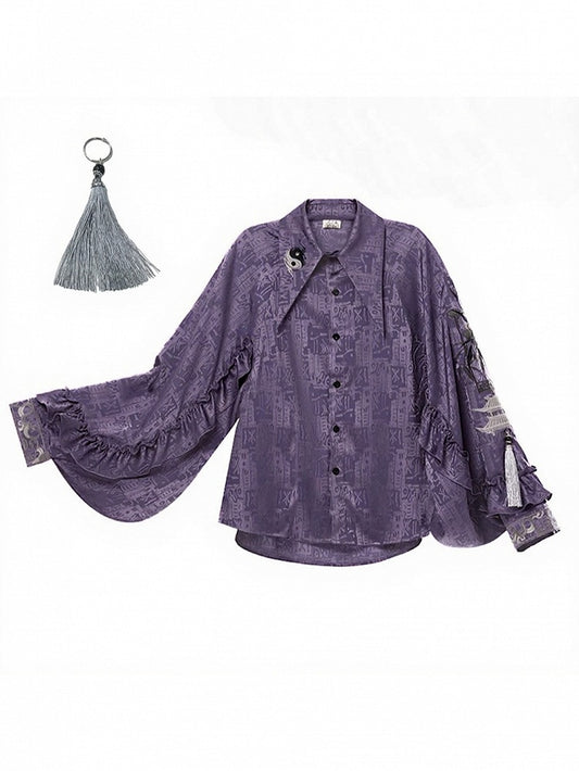 Sleeves Style Unisex with Shirt Flounce and Embroidery Chinese Purple