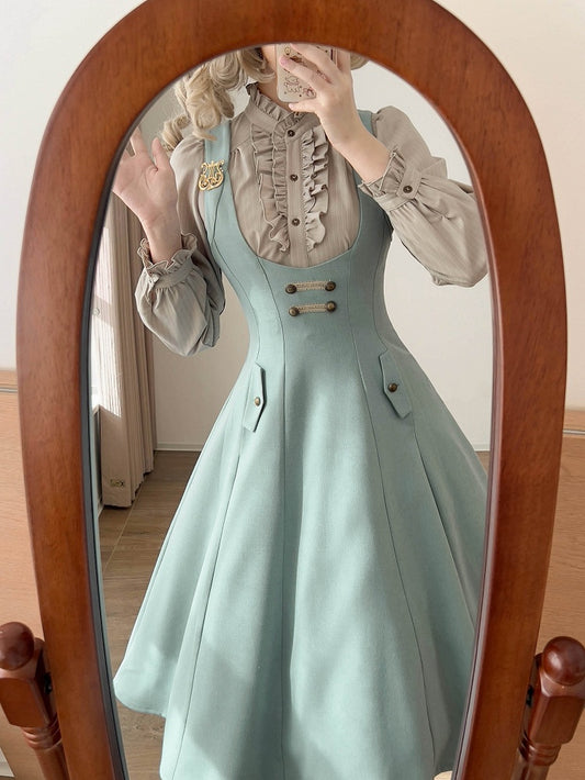 Sleeves Blouse + Ruffled Skirt Lolita Classic Details with Golden Lace Black Mermaid Long Set Elegant
