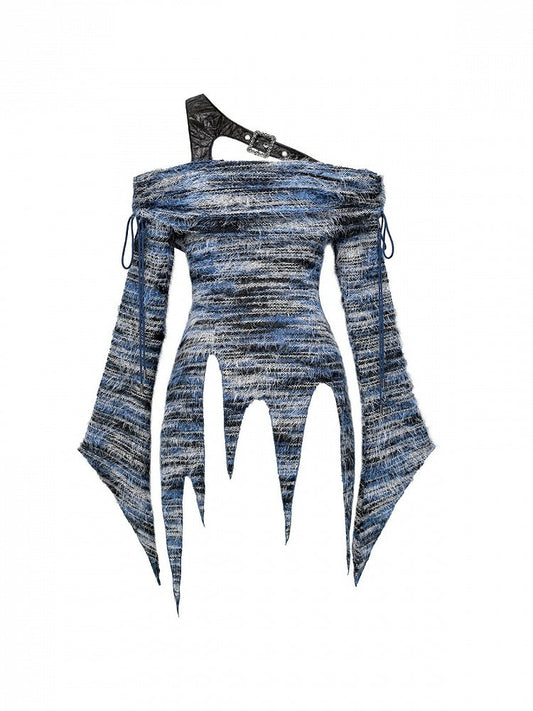 Asymmetrical Top Long Sleeve Punk Knit Style Y3K One-shoulder