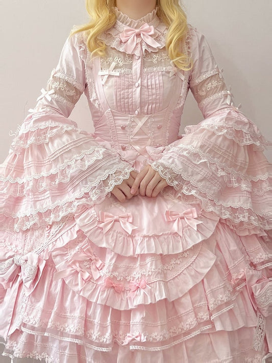 Cape Lolita JSK Bust Under Bell Blouse Pink + Set - Dress Full Sleeves Dollcore Sakura
