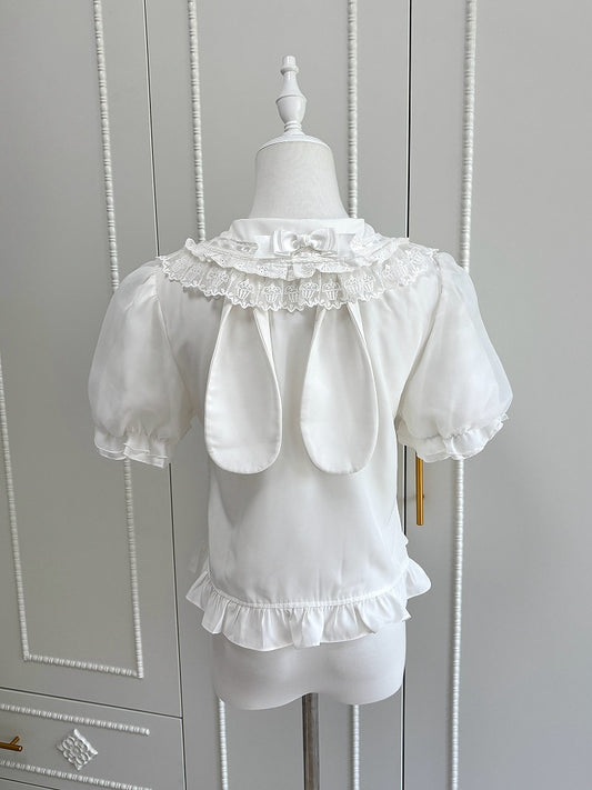 Short Collar Lolita White Round Flat Sleeves Shirt