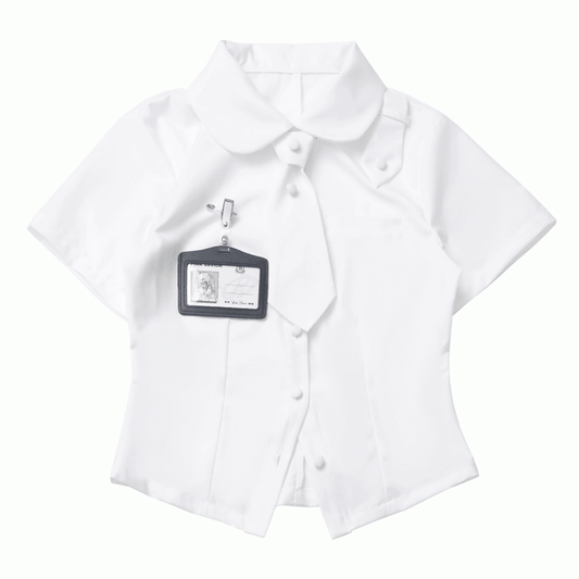 White Peter Pan Collar Short Sleeve Shirt Tie and Holder Card with