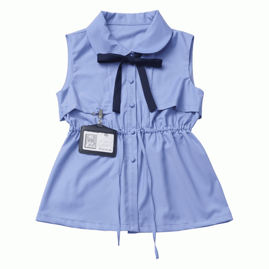 Card Blue Peter Pan Collar Sleeveless Shirt with Bowtie Holder and