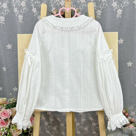 White Bishop Neckline Ruffle Sleeves Lolita Ouji Shirt Poet