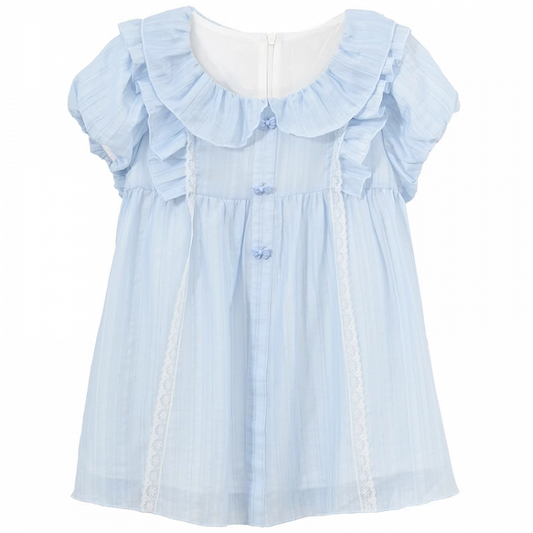 Sweet Light Blouse Blue Peter Pan Collar Puff Sleeves