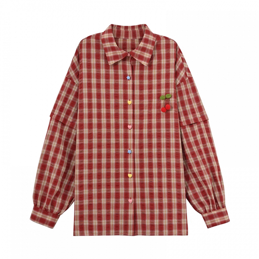Summer Loose Plaid Shirt with Detachable Sleeves Yellow/Green/Red