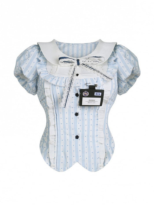 Peter with Striped Pan Polka Blue Collar Puff and Dot Blouse Sweet Sleeves