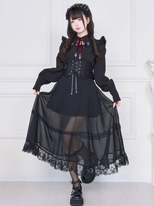 Ruffled Collar Gothic and Blouse Lolita Back with Black Lace-up