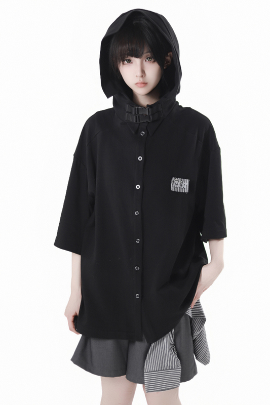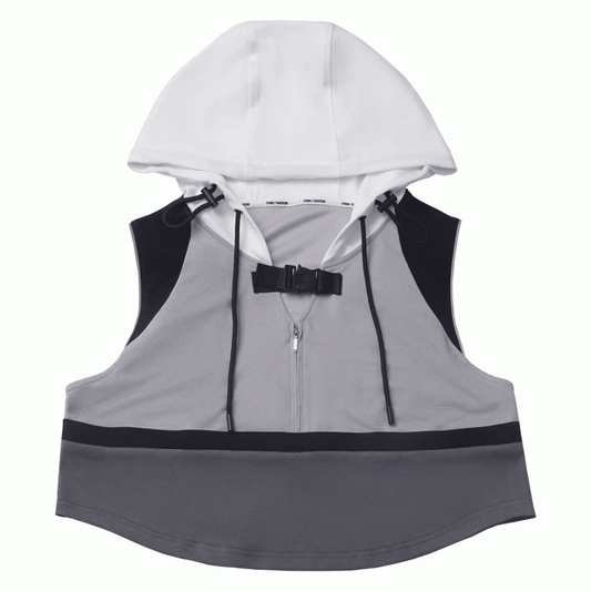 Vest Gray Colorblock Design Techwear Hooded Cropped