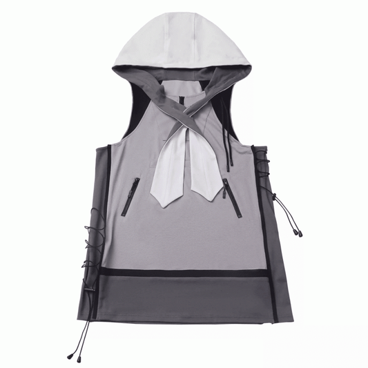 Dress Side Techwear Hooded Vest Gray Colorblock Design Drawstring