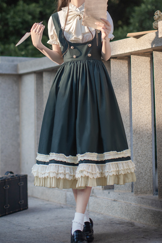 Sleeves Green Lolita - Skirt Blouse Dotted Cotton Tulle + Belt Set Bell Mesh Multi-layered Vest Elegant Dark Waist Classic