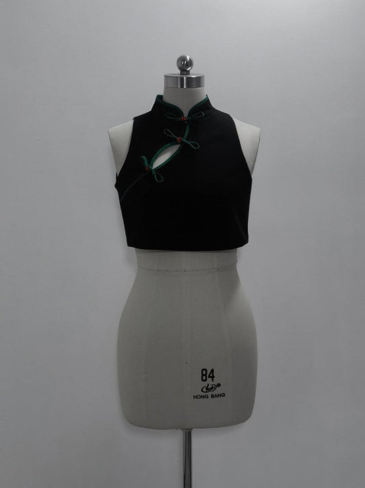 Cropped Top Collar Cheongsam Vest Black