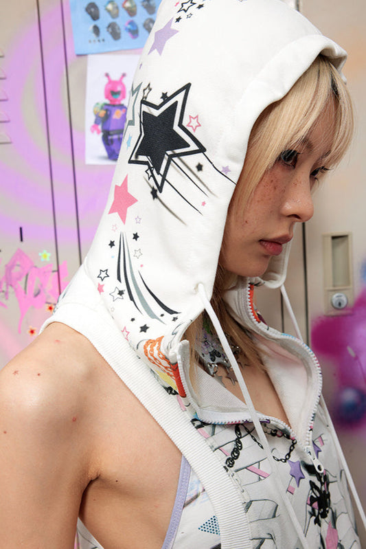 Zip-Up Hooded Sleeveless Vest Star