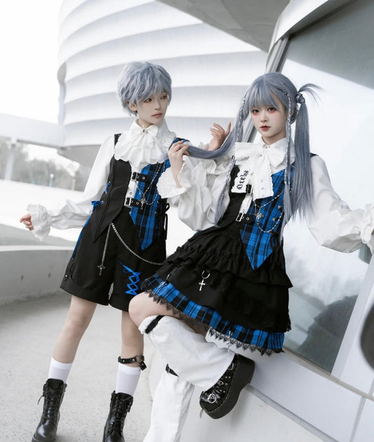 Suit Set Complete Check Vest Pants Skirt Shirt Prince
