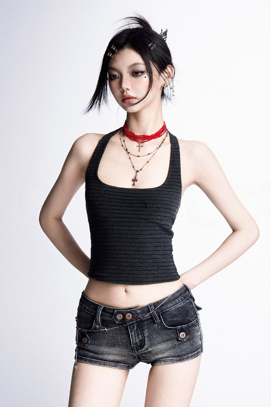 Short Lace French Ribbon Broken Top Vest Ballet Ultra