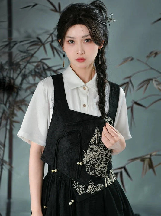 Chinese Shirt + Skirt + Jacquard Sleeve Vest Puff