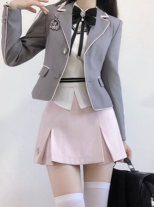 Jacket College Vest + Skirt Shirt Box + Slim Pleated Girl Sweet Ribbon Style