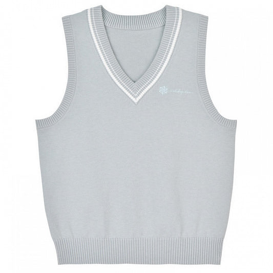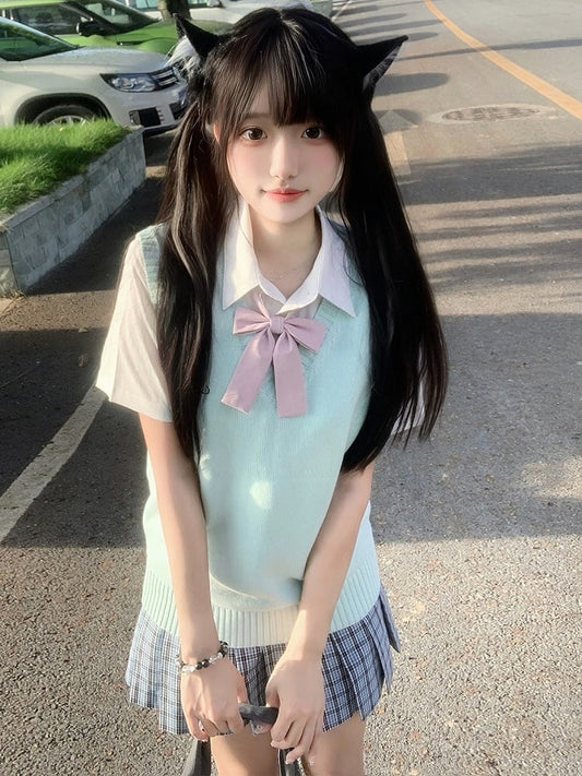 Green V-Neck Preppy JK Uniform Knitted Vest Light