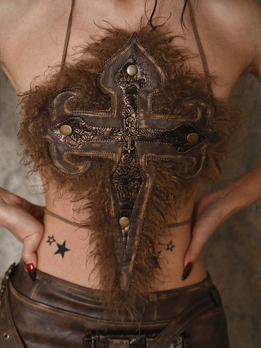 Team Punk Ruffle Heart Tie Collar Dye Top Retro Vest