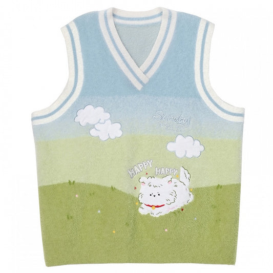 Blue & Green Gradient Puppy Pattern Knitted Vest