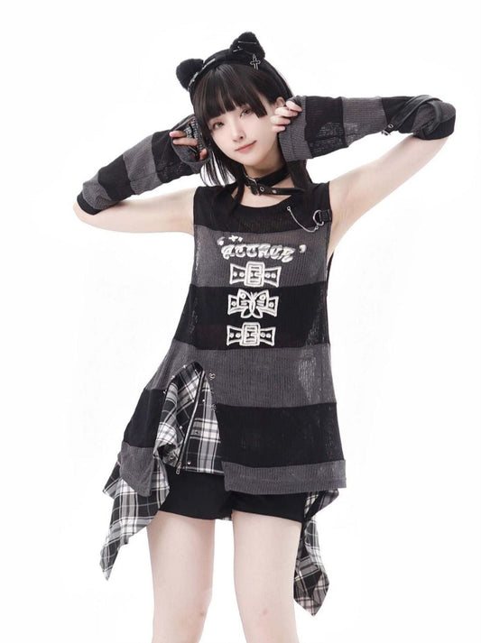 Epoch Check Vest Covers + Skirt Striped + Sleeveless + Leg Rhythm Sleeves