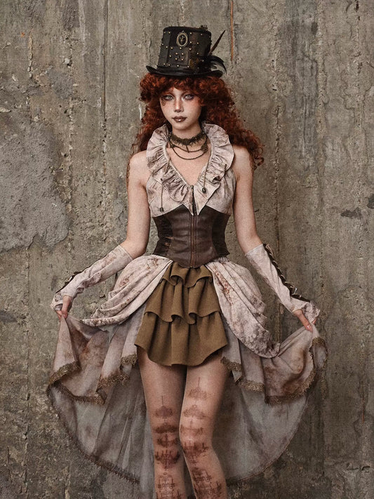 Skirt Subculture Lace Up Cake Top Strap Princess Set + Vest