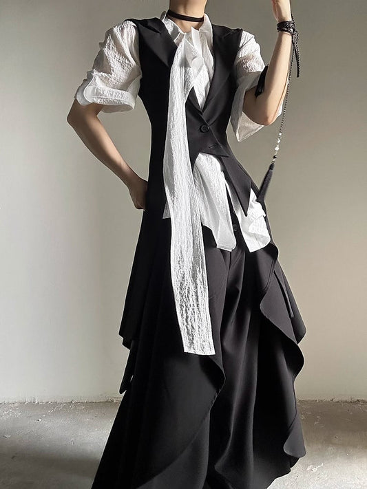 Pointed Collar Ouji with Black Flat Shirt Tie Long Lolita Short-Sleeve Vintage