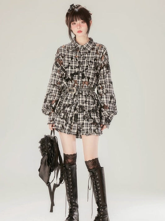 Retro Check + Blouse Flared Jacket + Girl Skirt