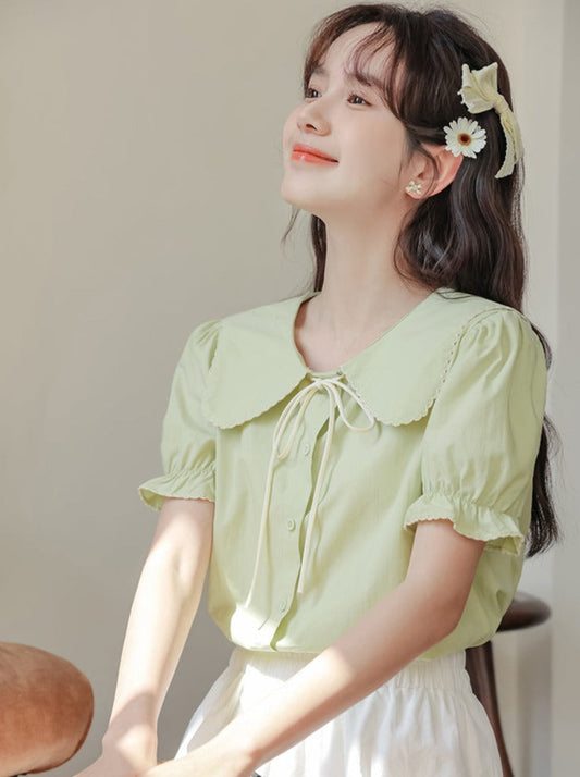 Puff Sleeve Skirt Flared Summer Shirt + Retro Medium