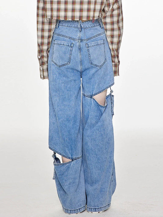Jeans Wide-Leg Cargo Strap Details Vintage Black Butterfly Print