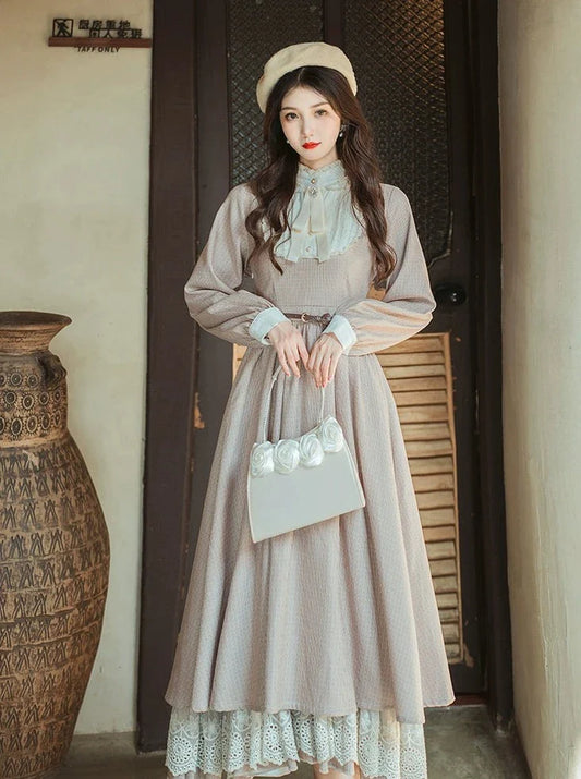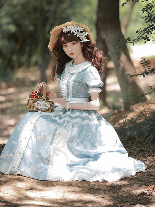 Light Dusty Blue Spring Vintage Boned High Waist Elegant Classic Lolita Skirt