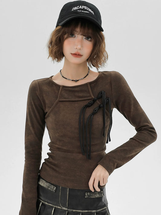 Lazy Off-Shoulder Star Ripped Retro Knit American