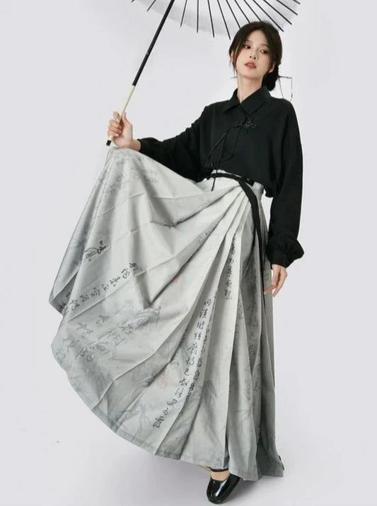 Jeans Black Punk Print Vintage Wide-Leg Cargo