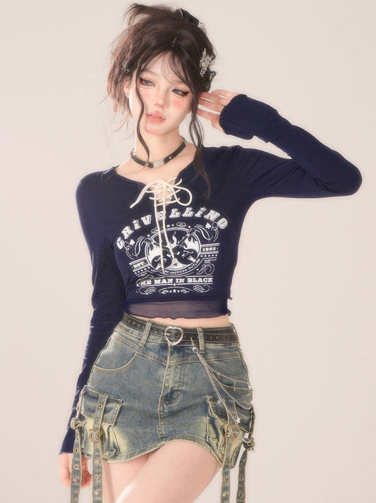 Hot Pin Fit Top Love Slim Print Girl Retro