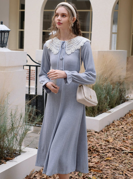 Collar Corsage Dress Retro Shirt Vest Cardigan Stand Knit Ruffle Sleeve + Japanese Ribbon