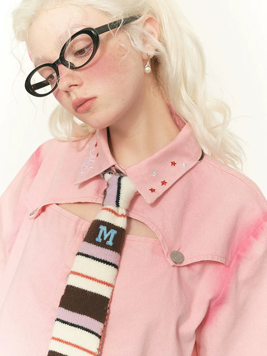 Zip-Up Hood Retro Ribbon Hoodie Ear Cat