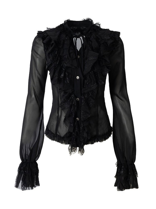 with Lace Tie-Neck Delicate Blouse Vintage Black Accents Princess