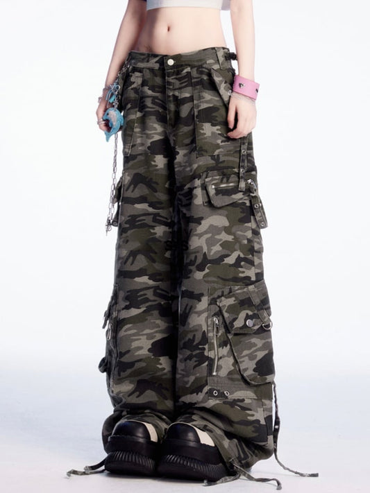 Wide-leg Cargo Pants Low Camouflage Waist Vintage