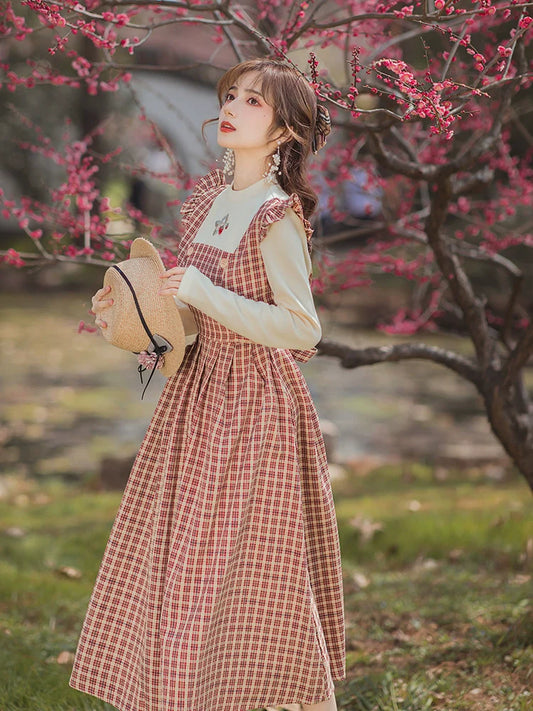 Blouse Girl Suspender Retro Skirt Retro