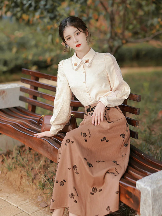 Blouse Long + Flower Retro Skirt