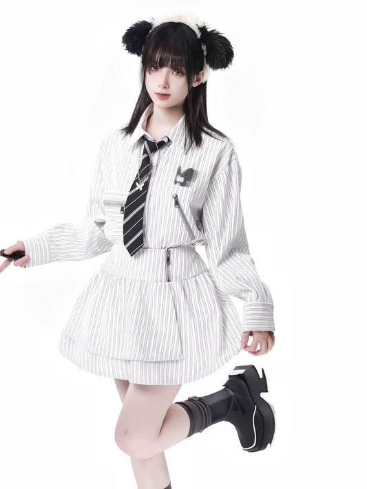 Stripe + Shirt Casual Street Lazy Skirt Retro