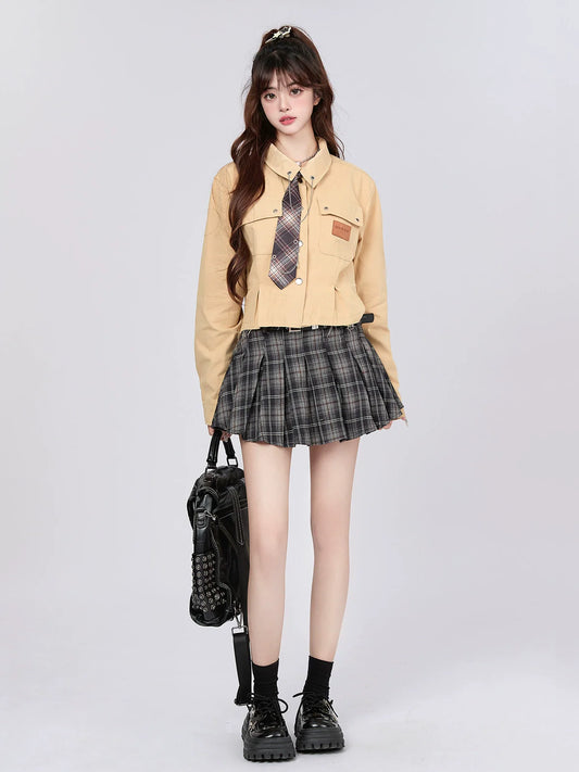 Vest College Skirt Colored Checked Knit Retro Shirt