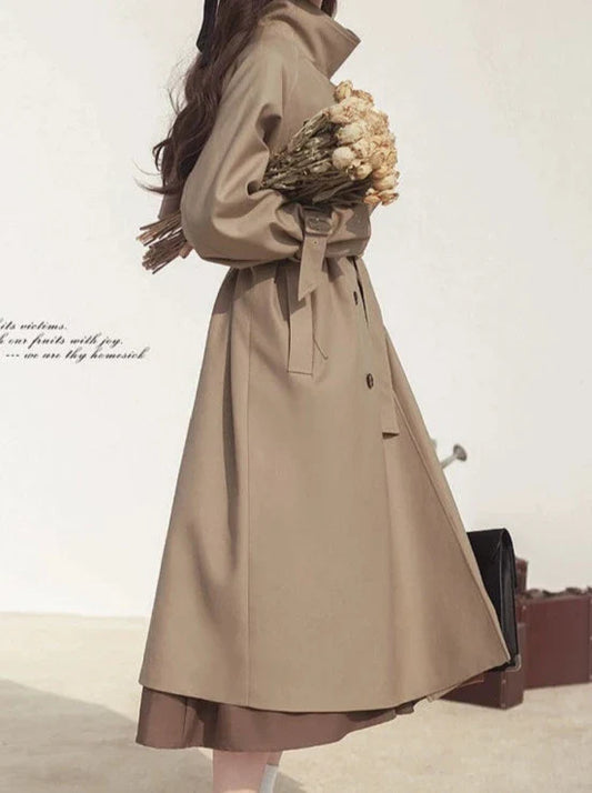 Trench Retro Style Coat British Khaki Elegant