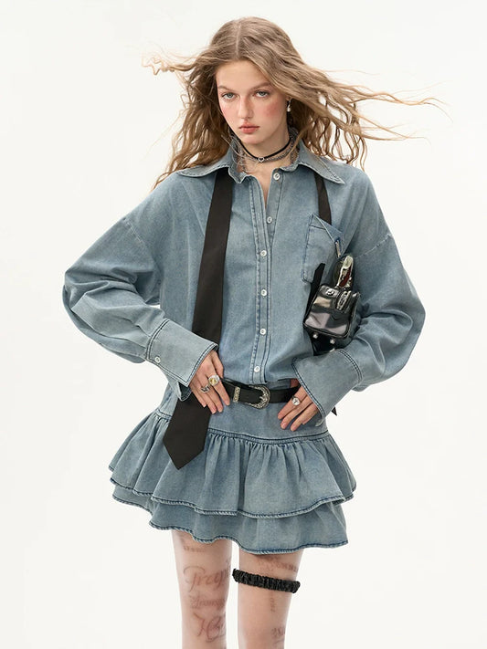 Punk Vintage Detachable Hem Patchwork White Back PU with Shirt Deconstructed