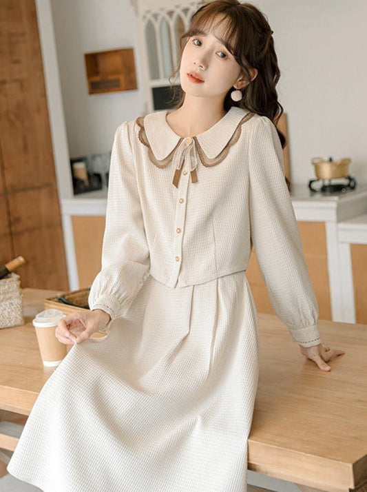 Retro Suit Piece Sleep Style Skirt Pleated Jacket College Vest